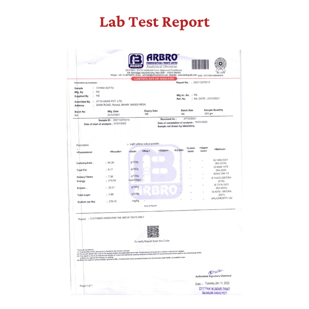 Make Atta-Ghar Channa Sattu a kitchen staple, enhancing your cooking experience with the convenience and health benefits of this essential ingredient. Whether you're making traditional drinks like sattu sharbat or experimenting with new recipes, Atta-Ghar Channa Sattu is a trusted companion in crafting delicious and nourishing dishes for yourself and your loved ones.