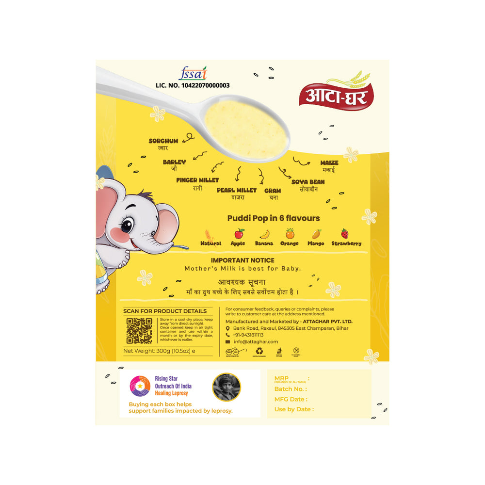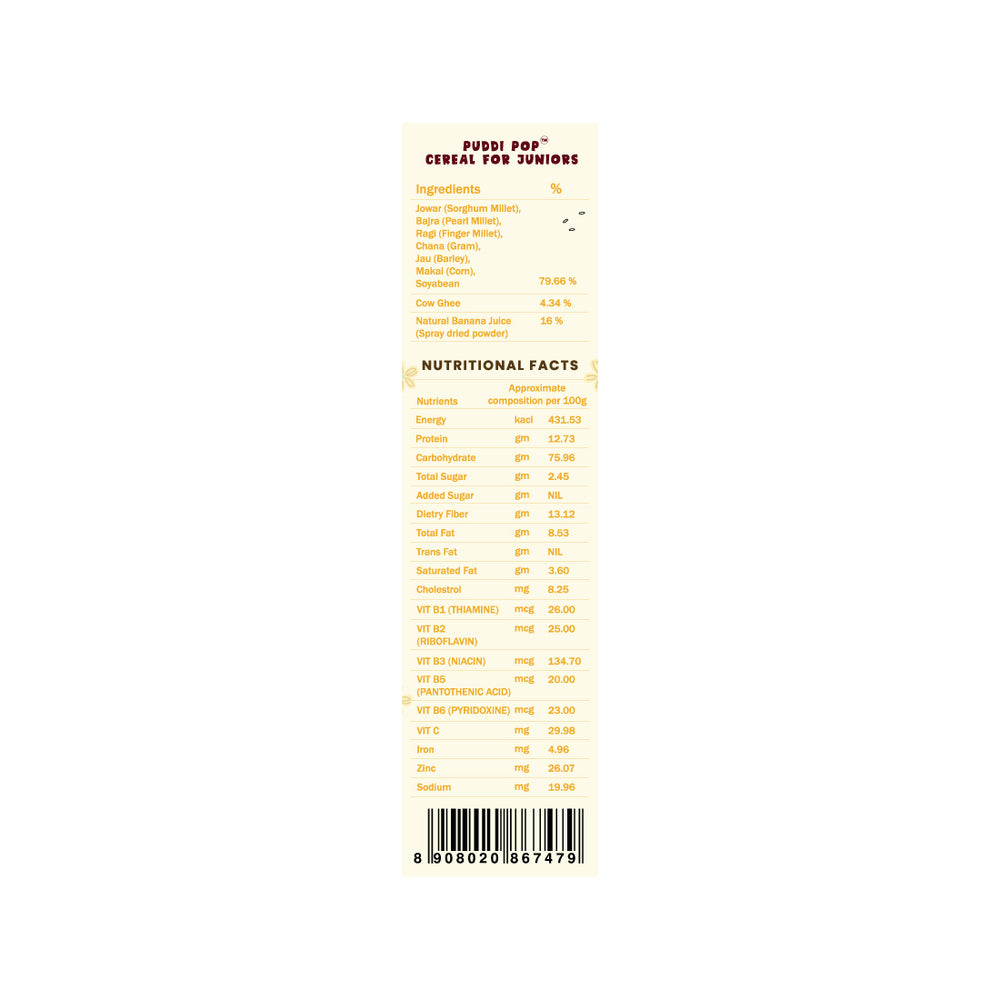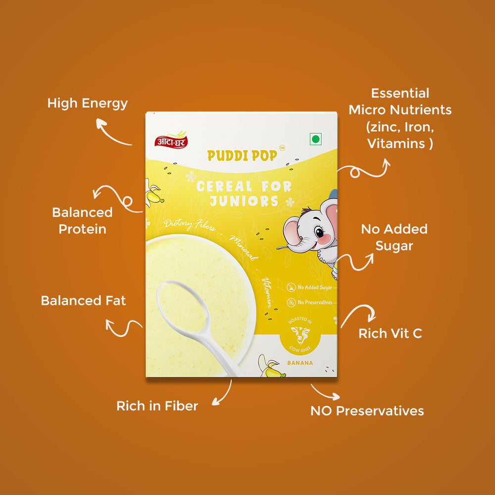 Give your baby the best start with our PUDDI POP– a nutritious, wholesome, and delicious option made from 100% natural ingredients. Free from wheat, sugar, and milk powder, this cereal is carefully crafted to provide your baby with all the essential nutrients without any unnecessary additives.